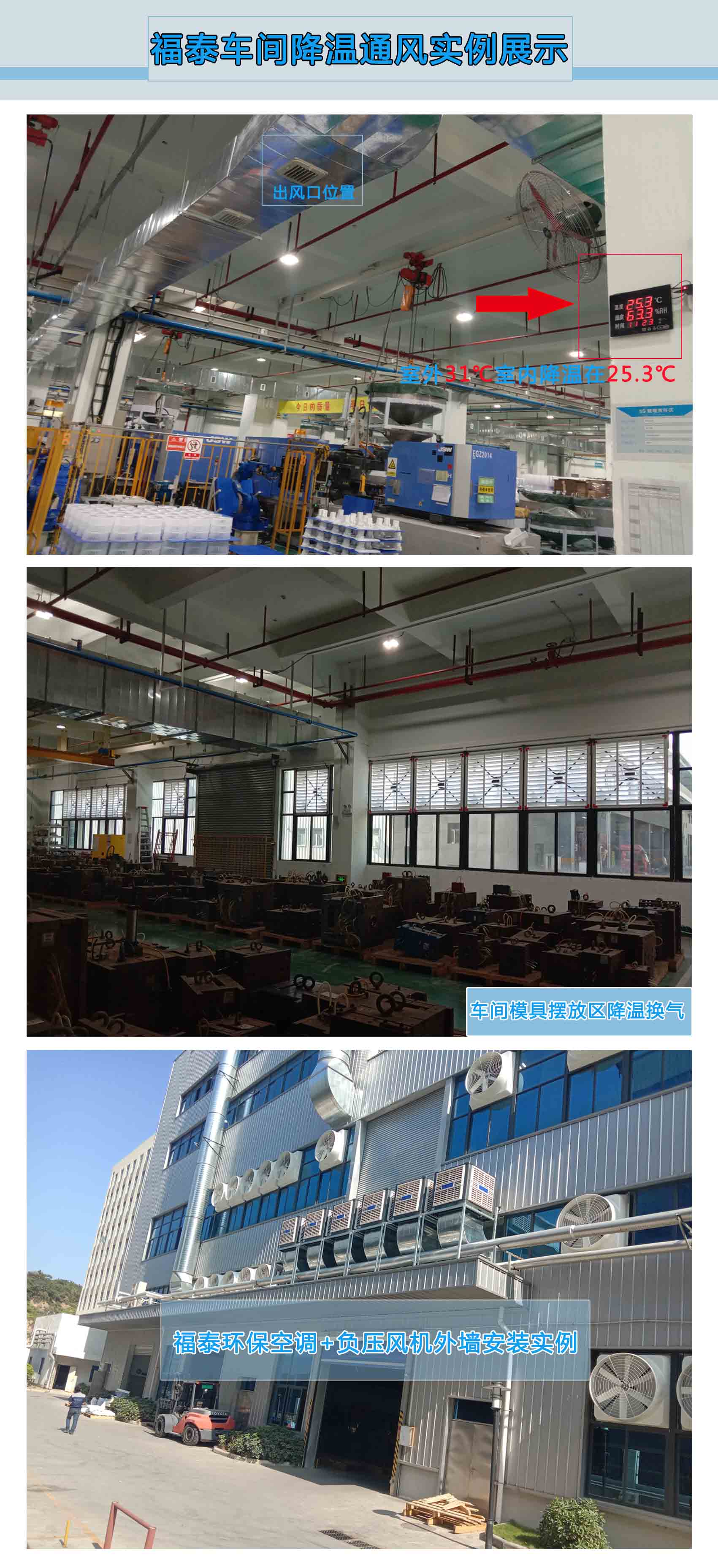 也有很多老板說用中央空調解決不了他們車間的根本問題,而且中央空調前期投入費用和使用費用以及后期的維護費用都讓很多老板望而卻步,今天你看到這篇文字時候就能趕上福泰的優惠活動買上適合你車間的真正降溫設備為員工改善環境,不僅少花錢少投資,使用最省錢的廠房降溫環保空調,給車間舒適鮮風、換氣、降溫通風通通搞定全部問題。