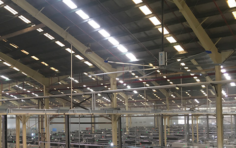 工廠高溫車間使用工業(yè)大風(fēng)扇通風(fēng)降溫